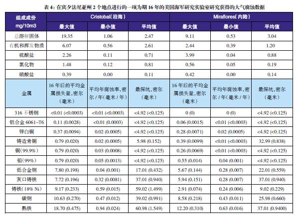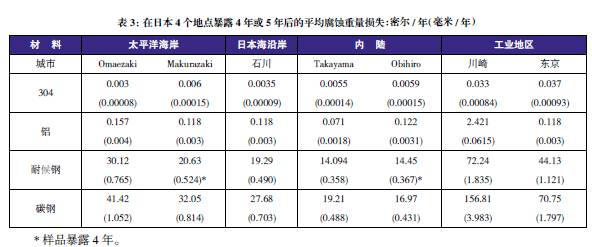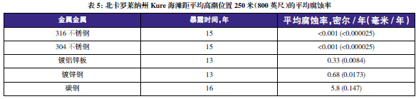 表3至表6的數據來自于日本、巴拿馬、Kure 海灘(北卡萊羅納州)和南非的試驗地點。可利用這些數據在類似環(huán)境中選擇適當的金屬材料,進行生命周期成本分析。