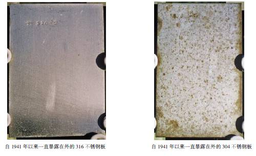 NIST曾經在多種土壤中對未采取保護措施的不銹鋼進行試驗。304和316不銹鋼在大多數土壤中都具有很高的耐點蝕和耐均勻腐蝕性能。在腐蝕性較強(如氯化物含量較高)的土壤中,304不銹鋼易發(fā)生點蝕,但316不銹鋼在包括潮汐沼澤和粘土在內的所有試驗土壤內均表現(xiàn)出良好的耐蝕性。316不銹鋼僅在被海水淹沒的海濱砂土土壤中發(fā)生了點蝕。