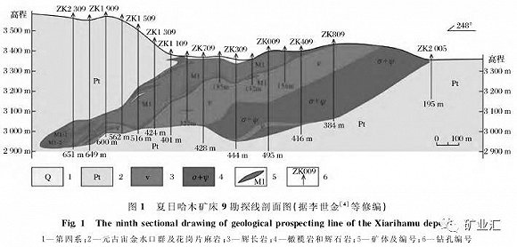 夏日哈木銅鎳礦床礦區地質圖,李文淵《中國西北部成礦地質特征及找礦新發現》